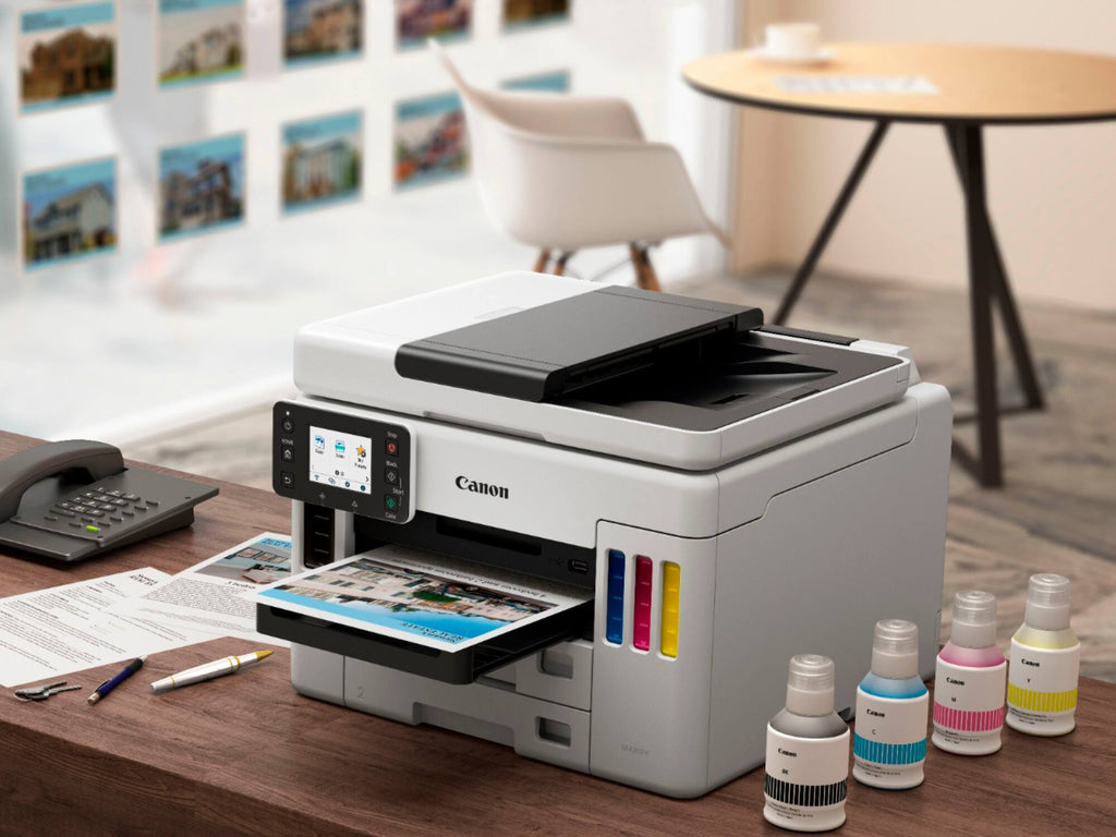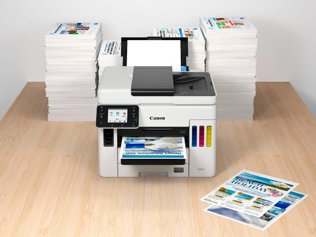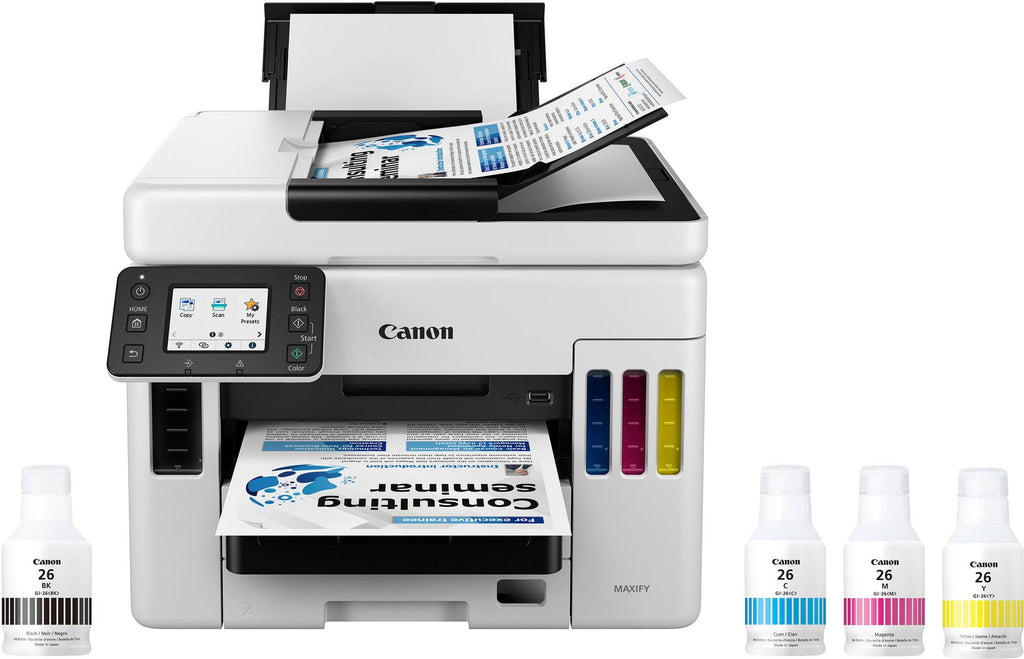 The Canon MAXIFY GX7021 is the ultimate business-class supertank, designed to deliver high-speed, high-volume performance with a remarkably low total cost of ownership. Built for offices that can't afford to slow down, this MegaTank model features a massive ink capacity that allows you to print thousands of pages before even thinking about a refill. With its specialized pigment-based ink system, four-in-one functionality, and robust paper handling, the GX7021 provides the durability of a laser printer with the color brilliance and economic benefits of an inkjet.